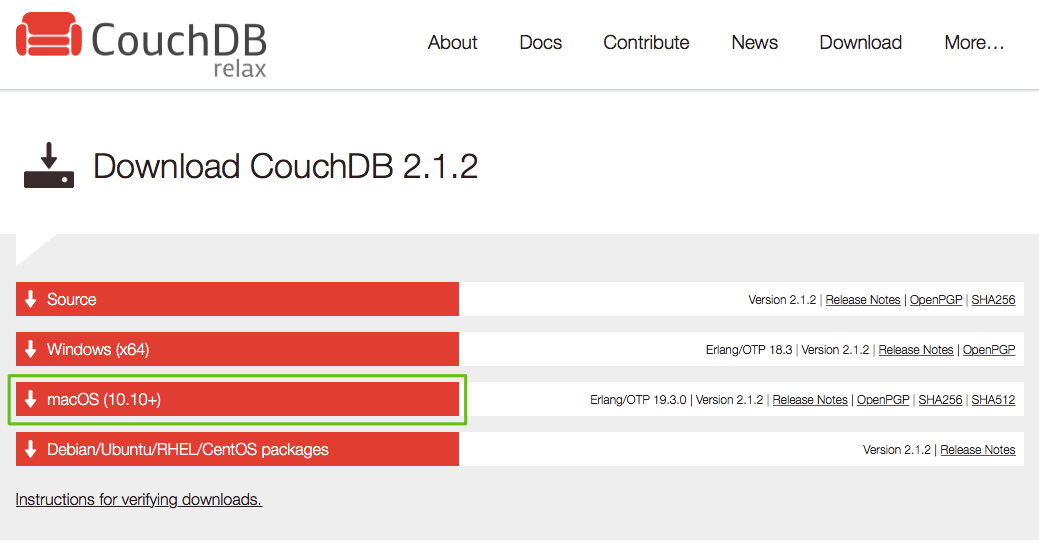 Go to the download section of the official CouchDB site http://couchdb.apache.org and click the macOS