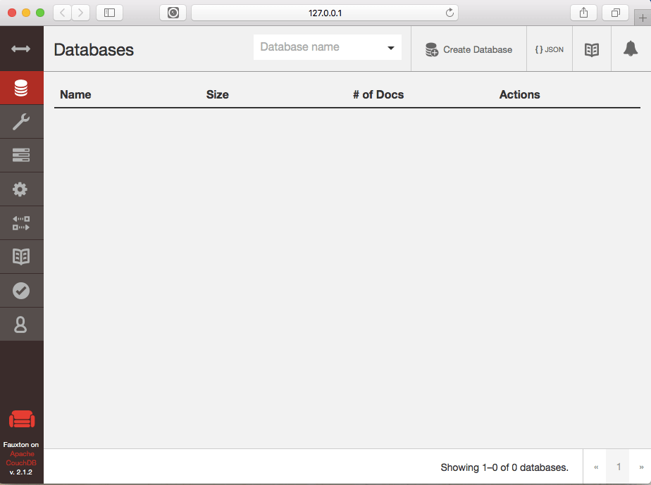 . This automatically opens up the browser which loads a page at http://127.0.0.1:5984/_utils/