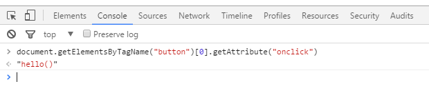 But as in the case of event attributes, setting a property does not create the corresponding attribute. So if the onclick='hello()'